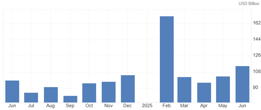 La bilancia commerciale della Cina per il giugno 2025 è stata di 114,77 miliardi di yuan, e il dato previsto per luglio è leggermente inferiore a 111 miliardi di yuan. Questo lieve calo è probabilmente dovuto alle fluttuazioni stagionali del commercio e a una leggera ripresa della domanda di importazioni con la graduale ripresa dei consumi interni. Mentre si prevede che le esportazioni rimangano stabili, l'aumento delle importazioni, soprattutto di materie prime e beni intermedi, potrebbe ridurre l'avanzo. Le previsioni riflettono una prospettiva equilibrata, suggerendo una performance commerciale stabile senza grandi interruzioni. I dati saranno pubblicati il 7 agosto alle 0300 GMT.