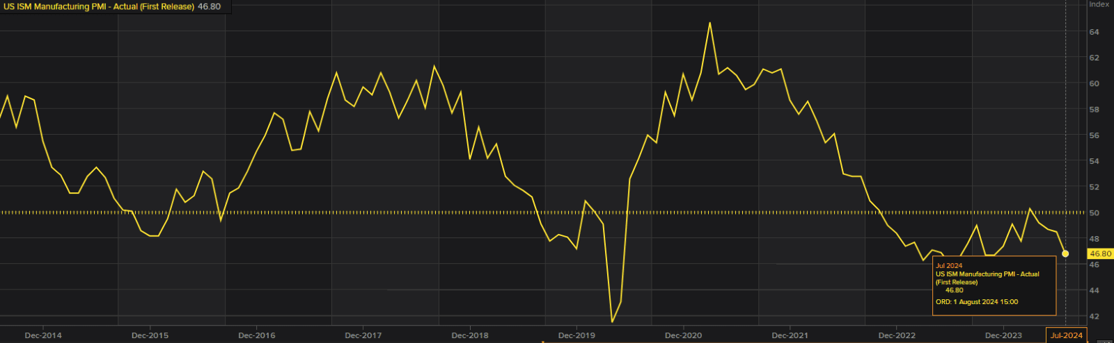The key focus today is US ISM Manufacturing PMI, which is expected at 47.5 vs. 46.8 prior. Last month’s survey was the weakest since Nov 2023. Remember the ISM was the initial trigger for the early August selloff, probably mainly on the employment sub-index, which hit a four-year low. The employment survey fell to 43.4 versus 49.3 in the prior month. We could see some dovish repricing in rates and FX if there is further weakness.
