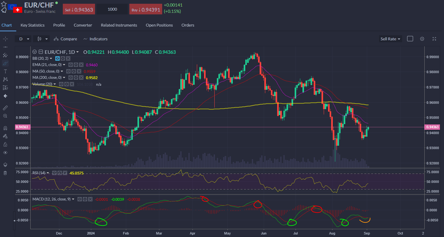 Swiss franc strength: EURCHF touched a record low in August and is not too far above this level today.