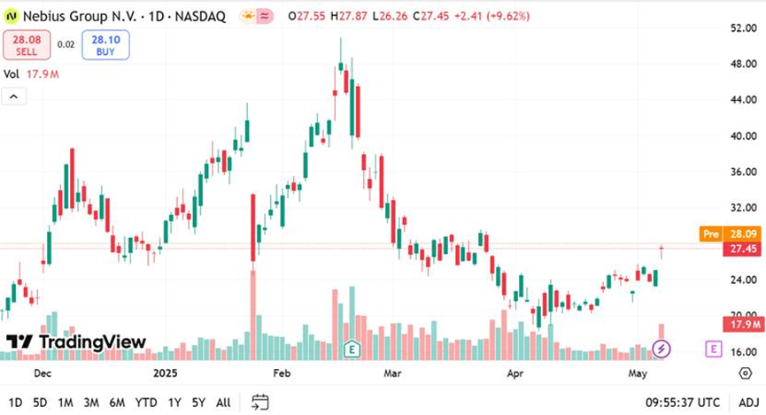 Nebius Group fluctuated on Wednesday, closing at $27.45 per share as investor sentiment was lifted by billionaire Jeff Bezos’ investment in the company.